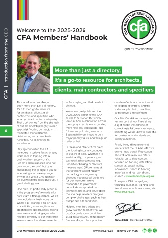 INTRODUCTION FROM THE CEO Introduction from the CEO CFA Members’ Handbook to Contract Flooring
